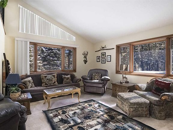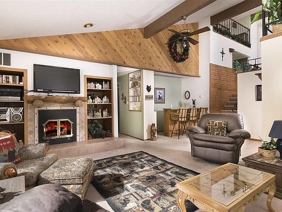 This is a nicely built custom home that has been well maintained through the years. It is centrally located and is close to the Country Club and championship golf course as well as Monte Verde Lake. Located on a flat lot with a greenbelt on the south and west this adds lots of play space and back yard seclusion. This house has easy year round access. Lots of light with windows floor to ceiling in open living/dining areas. With 4 bedrooms and an additional sleeping loft, this cabin will sleep a small army! The living room with soaring vaulted ceiling is anchored with a beautiful fireplace and built ins. The wetbar is centrally located so everyone can enjoy a beverage without crowding the kitchen. With seating for 14 at the dining table, counter and bar, the open kitchen flows easily into the living space. Nothing better than a wood burning stove in the dining/kitchen for added ambiance.! The spacious master suite is on the back of the house with French doors opening out to a private deck. The bedroom is large enough for a full size sleeper sofa, sitting area and walk in closet. The master bath has a walk in shower and Jacuzzi tub as well as a spacious vanity with 2 sinks. The other three bedrooms have queen size beds. One has French doors opening to the back yard deck. The "Bear's Loft" sleeps 8 in twin beds! If you are looking for additional space to play, this house has a 4 car oversized HEATED garage set up with a pool table, game table, washer and dryer and enough room to roller skate! Open the garage doors and you have a huge patio with additional space to entertain a large group. Fully furnished and ready to move in makes this an excellent family cabin or an investment property. Kit Carson High Speed Internet installed!
