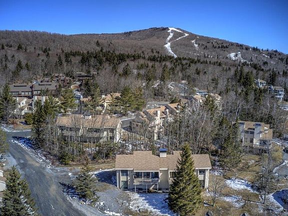 This larger and beautifully updated, End-unit Townhouse located in the Clovers section of Bromley Village is just a short walk to the Clubhouse and ski trail access! An open Main Living area features exposed wooden beams, beautiful stone, wood-burning fireplace to gather around in the evenings, and three new sliders to the spacious Deck with views! The Dining area offers plenty of room and the Kitchen has been renovated with gorgeous granite counters, tiled backsplash, wooden cabinets, and stainless appliances. There also is a Half Bathroom on the Main Level and the Loft offers additional space above the Living area. Three Bedrooms (including a Primary with walkout, his/hers closet, adjoining Full Bathroom, and another Bedroom features built-in bunk beds), as well as additional Full Bathroom and Laundry/utility areas are located on the Lower Level. Tastefully renovated and appointed! The Entry/Shed area has trash and firewood storage, as well as bench. The Clovers townhomes are centrally located in Bromley Village and offer short walking distances to the ski trails as well as the Clubhouse with Fitness center/lounge, sledding hill and fire pit, seasonal heated pool with lifeguards, tennis courts, and playgrounds. There is Shuttle Bus service in the winter months, to and from the Bromley Mountain Base Lodge