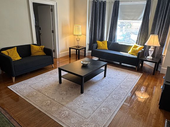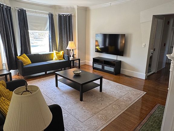 Furnished room with private bath, furnished shared living room, shared kitchen with high end appliances including dishwasher and washer and dryer in shared laundry area. Space has been completely renovated with new cabinets, granite countertops, and tile surround shower. Gleaming hardwood floors throughout. All utilities included! No pets. Convenient to all area colleges! 3 month option available as well