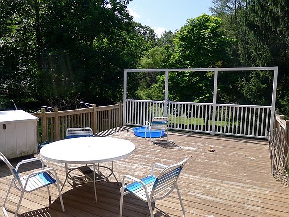 Well-maintained Colonial on park-like 1.36 acres bordering Hedden County Park. Foyer with hardwood flooring leads to spacious living room with neutral carpeting and wood burning stove with fieldstone and brick surround. Sliders to oversize deck overlooking backyard oasis. Level tree-lined yard with room for pool or expansion! Eat-in kitchen with breakfast nook; ceramic tile counter and backsplash; ample cabinet space. Upper level features two roomy bedrooms plus office/possible third bedroom with closet. Basement with laundry hookups, plenty of storage space. This immaculate home also has central air and public sewer. Ideally located, just minutes to commuter routes, schools, shopping, yet situated on a tranquil cul d'sac! Nothing to do but move in and relax on your back deck, enjoying the private backyard retreat!