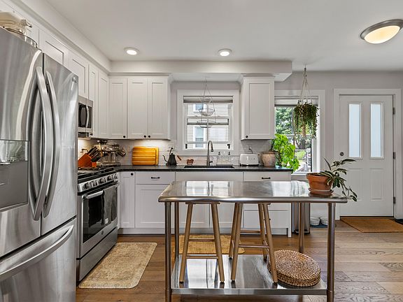 The open layout kitchen/living/dining room is on the 1st floor, a light filled primary bedroom and large bathroom with double vanity and laundry room is on the 2nd floor, and a bonus room with sunny skylight is on the 3rd floor (your choice: office, media room, guest or exercise room!).