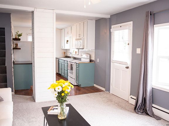 Adorable 3 BR/2 BA cape is what you've been looking for! This home features an open floor plan with modern touches sprinkled throughout including shiplap, barn doors, and tile backsplash. Freshly painted and brand new carpet ('20). Hardwoods underneath. Natural light fills the space! Large master bedroom with a huge closet. The walkout basement is a great spot for potential livable space. Enjoy spending the warmer months under the pergola or by the fire pit. Just minutes from shopping, restaurants, and all the conveniences Colonie offers while also being situated on a private, wooded lot. South Colonie schools. Schedule your showing today!