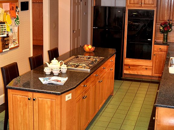 - Kit Dscrp: Countertops - Stone/Granite/Solid, Deck - Exterior, Skylight, Ceiling - Cathedral, Flooring - Stone/Ceramic Tile, Kitchen Island, Open Floor Plan, Exterior Access, Gas Stove