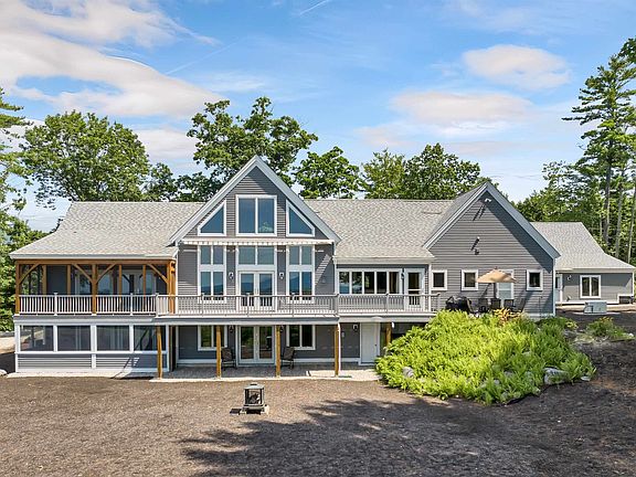 MELVIN VILLAGE. Stunning VIEW Home located in the charming low-tax town of Tuftonboro in the beautiful Lakes Region of NH. This stunning custom-designed timber-framed home sits on 10.3 acres, offering breathtaking southern views of Lake Winnipesaukee, the islands, the Belknap Mountains, and panoramic northern views of the Ossipee Mountains, Bald Knob, and Castle in the Clouds. Nature lovers will appreciate the home's proximity to an 88-acre conservation easement managed by the Lakes Region Conservation Trust & the Great Meadow hiking trails. Enjoy amazing west-facing sunsets over Melvin Bay right from your porch. Inside, the home boasts floor-to-ceiling windows that let in plenty of natural light. The open living space is ideal for entertaining family & friends. The kitchen is a cook’s dream, complete with a butler's pantry & a large food storage pantry. The first-floor primary suite features timber framing, atrium doors that open onto a screened porch with panoramic lake and mnt views, an ensuite spa, and a spacious walk-in closet. There are 2 additional bedrooms on the lower level, each with private porches and another ensuite bath. Upstairs, you'll find a family room/office space with incredible lake and mnt views. There's even a main-level in-law suite that is handicap accessible.The oversized heated two-car garage includes a workshop with direct entry to home through a beautiful mud room Subdivision potential for future investment. Literally minutes to Melvin Wharf.
