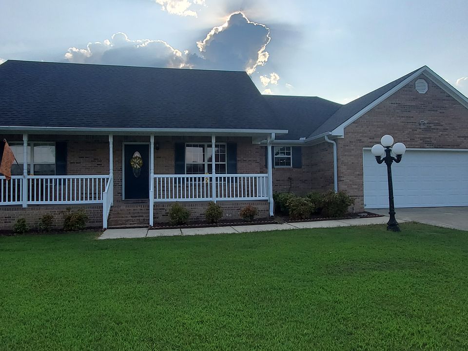 Ready to move in! 3 bed 2 bath brick home in Trinity area on +-1 acre. Lots of ceramic tile and hardwood. Formal dining plus eat in breakfast and eat at counter height bar. Lots of space for prep or great for entertaining. Plenty of oak cabinets. Formal dining has "tile rug". Split floorplan. Tons of storage. Glamour master suite w walk in closet. Roof 12/2014, stove 2015, HVAC 08/2015, updated dishwasher and paint. Covered front and back porch. Back porch and patio has quarry tile. Double attached garage. A must see! Call today!! 2563032257