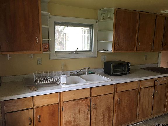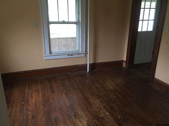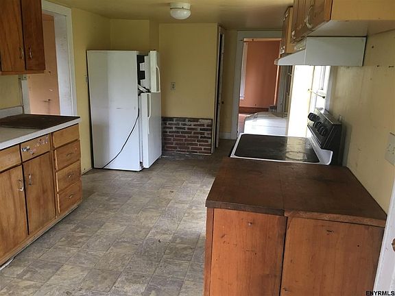 This farmhouse sits on .75 acres and overlooks a dairy farm. Enjoy these views from the front porch or enjoy the treed-privacy from the backyard. Inside the front door leads to the living room which wraps around to the kitchen. Off the kitchen is a separate dining room. Upstairs has 3 bedrooms with a full bath and hallway closet. Windows replaced upstairs & electric has been updated. Home calls for some fresh paint and updating of kitchen. However, great potential and less than a half mile from town