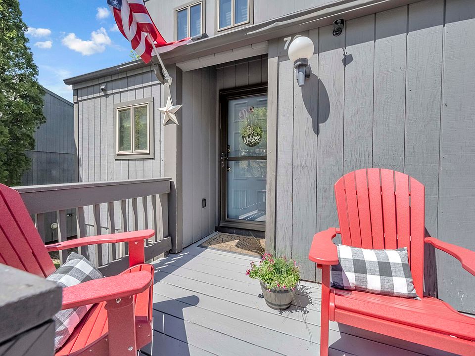 Propane fireplaceSpacious wrap-around deckCorner-unit townhouseUpdated comfort featuresOpen layoutParking lot level unit