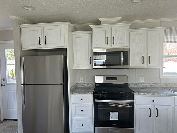 BRAND NEW 2025 MANUFACTURED HOME!!! THIS IS A LOVELY HOME. NICE MASTER BEDROOM WITH PRIVATE BATHROOM FEATURING DOUBLE SINK VANITY AND A LARGE WALK IN SHOWER. THE KITCHEN IS THE HEART OF THIS HOME WITH A NICE OPEN LAYOUT THAT OFFERS A CENTER ISLAND KITCHEN IN A NAVY BLUE TONE WITH WHITE CABINETS AND STAINLESS STEEL APPLIANCES. LARGE WINDOWS LET IN LOADS OF NATURAL LIGHT. THERE ARE 2 BEDROOMS AND 2 FULL BATH ROOMS IN THIS HOME. THE LOCATION IS VERY CONVENIENT TO SHOPPING AND THE TURNPIKE BUT ON A COUNTRY ROAD. THE YARD HAS A LARGE SHED FOR STORAGE AS WELL. THERE ARE DOUBLE PANE TILT IN WINDOWS THROUGH OUT. WOW....WHAT A SUPER LOOKING PROPERTY AND COMES WITH A ONE YEAR WARRANTY!