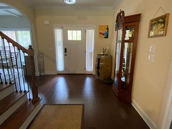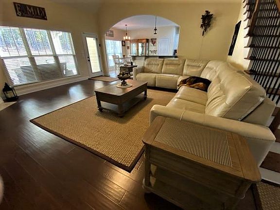 This house is as pretty as a picture nestled in a quiet cul-de-sac surrounded by beautiful oaks and pines!. In the foyer, formal dining, and family room, you will find lovely hardwood floors as well as in the master bedroom which also has a large en suite bath with his/her closets. Leathered granite countertops along with a custom-built island, convection oven, and pantry are in this spacious kitchen. Lastly, there is an awesome outdoor living space with an oversized patio and pool!