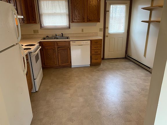 Private quiet setting sitting on mostly wooded ~2+ acres and more wooded area around that. easy access, one step entry. 2 bedroom duplex, same level front and back entry and exits. Utility laundry room for washer and dryer. Detached storage shed. Each bedroom has large 8 foot wide closets. On site trash disposal, and plowing included. Rent+ electric, water and efficient propane heat. Mowing and leaf pickup by tenant, mower provided. Available April 2025 First months rent * security deposit