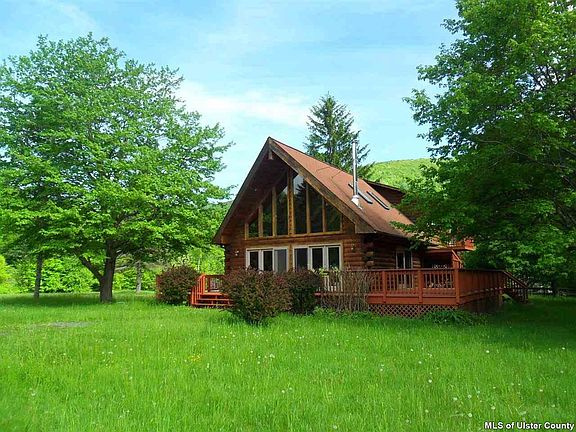 Water front log home privately sited on three acres awaits your arrival. LOVE the outdoors? You'll enjoy being only 4.5 miles to Phoenicia, 12 mins to Hunter, 20 mins to Belleayre, & 25 minutes to Windham. Nearly 2000 square feet of natures most efficient building material with gorgeous mountain & meadow views. Open floor plan with access to deck through living & dining room, perfect for entertaining with family & friends. Large master suite with jacuzzi tub, balcony, & loft make your private oasis.