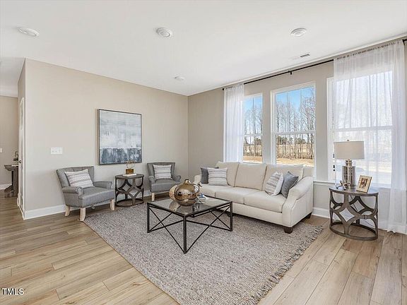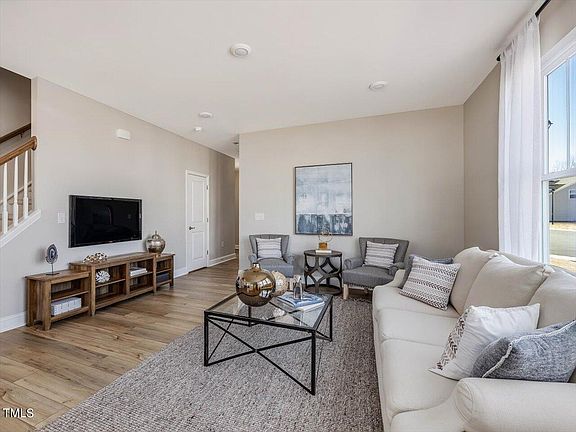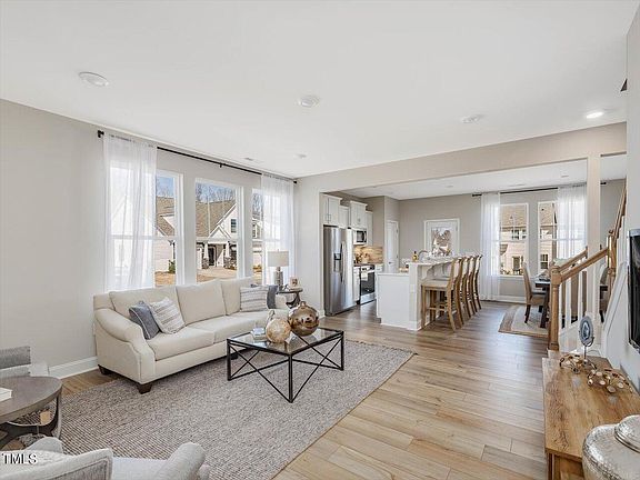 Beautiful End unit townhome in a desirable neighborhood, right across from the upcoming Waterfront district. 3 spacious bedrooms, 2.5 bathrooms, open floor plan, 1 car garage and much more. Near dining and shopping. Short drive from anywhere in the Triangle. Furnished photos are of a model for illustration purposes only. Home to be completed Nov/Dec.