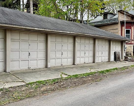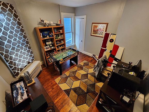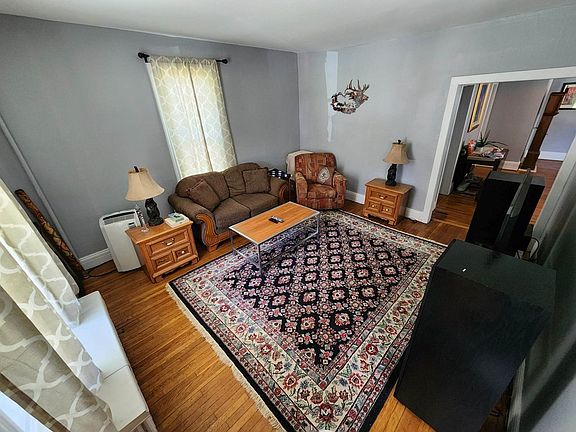 Spacious 4-5 bedroom home with historical charm. Featuring 2 full bathrooms, a large kitchen and a 6 bay garage that is accessible from the alley. Home and garage have separate 200 Amp electric service. Updates include: Vinyl windows, newer boiler, and new flooring in the upstairs back bedroom. **Front Porch is in the process of being painted**