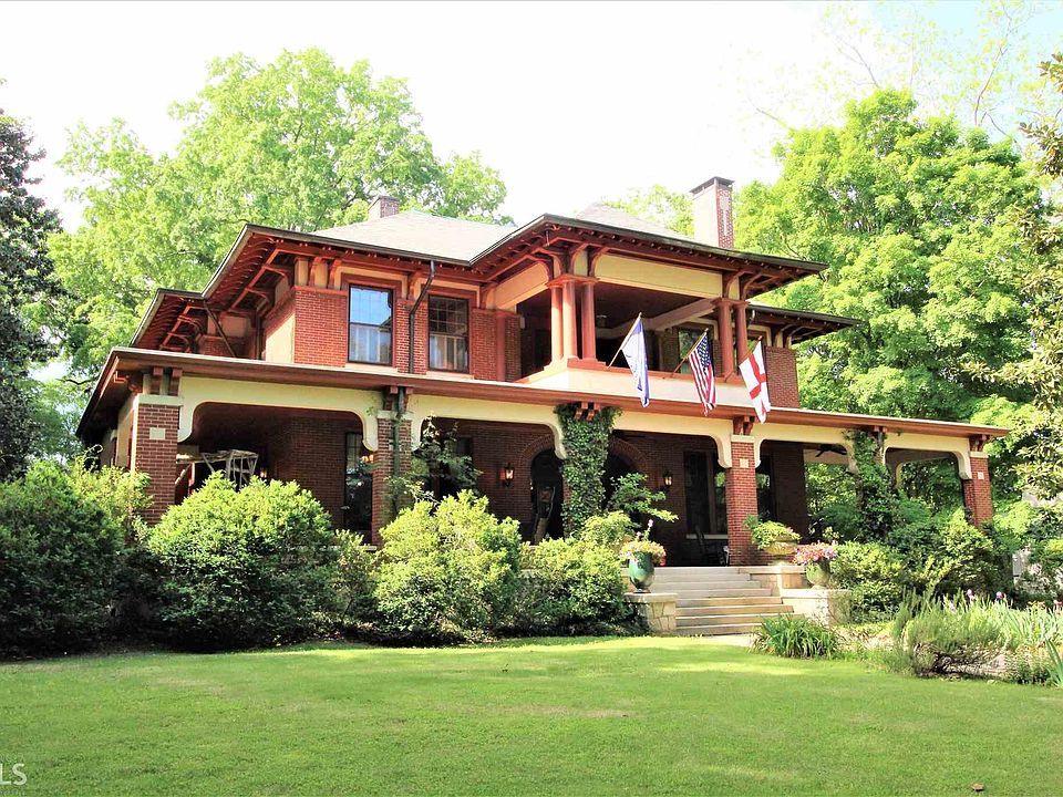 WONDERFUL BRICK CRAFTSMAN-PRAIRIE STYLE DOWNTOWN NEWNAN COLE FAMILY ESTATE INVITES YOU TO ENJOY AN OUTDOOR PLAYGROUND ON 1.29 ACRES, HEATED POOL, POOL PAVILION W/FULL BATH & KITCHEN, LUSCIOUS LANDSCAPING, BRICK WALK WAYS, WIDE PORCHES, PATIOS &PORTE COCHERE. WELCOME INSIDE TO 14 FT BEAMED CEILINGS, 7 FIREPLACES, MAHOGANY PANELING, RICH ACCENTS & COLUMNS THROUGHOUT. KITCHEN RECENTLY REMODELED W/CARRARA MARBLE TOPS, STAINLESS APPLIANCES & A WONDERFUL OVERSIZED ISLAND - PERFECT FOR ENTERTAINING! ORIGINAL FLOORING & LIGHTING CUSTOM MADE IN NEW ORLEANS, MARBLE & TILE. 5 BEDROOMS, 5.5 BATHS, SUN PORCH W/GORGEOUS WINDOWS, THIS HISTORIC HOME HAS BEEN WELL MAINTAINED & UPDATED TO RETAIN ITS HISTORIC BEAUTIFUL CHARACTER & CHARM.LGLOT W/BARN - EXTERIOR -FRESH PAINT
