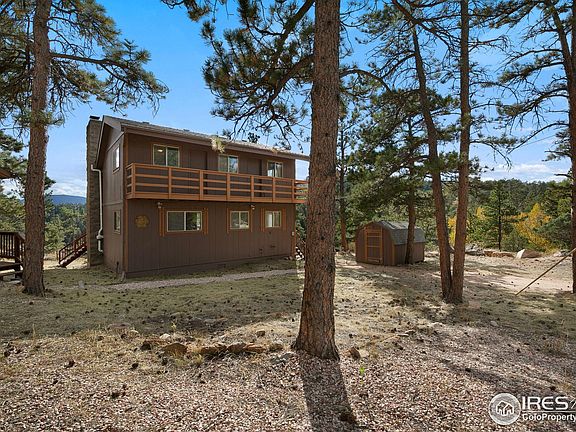 Unwind in your own mountain retreat in the breathtaking Glacier View Meadows community of Livermore. This two-story gem sits at the very end of a peaceful cul-de-sac and is flanked by open spaces on two sides with mature trees providing a sense of natural seclusion, ensuring unparalleled tranquility and privacy. It's a rare find, where the only sounds you'll hear are the whispers of the wind through the pines and the songs of the local wildlife. Step inside, and you'll be welcomed by an open floorplan that takes full advantage of the mountain views. Vaulted ceilings create an airy and spacious atmosphere, while slate flooring adds a touch of natural elegance. Picture windows frame the outside world like living art, bringing the beauty of nature into your everyday life. A floor-to-ceiling moss rock fireplace is the perfect companion for cozy winter evenings and the focal point of the room, adding a rustic touch to the modern surroundings. The main level bedroom is your haven for rest and relaxation, offering easy access and a sense of privacy. The two additional bedrooms upstairs, each with access to the spacious balcony, provide flexibility, ideal for family, guests, or a creative space. A freshly painted wraparound deck offers the ideal spot for entertaining and relaxation. With great views as your backdrop, you can host barbecues, stargazing evenings, or simply soak in the fresh mountain air. The insulated garage and shed provide plenty of space for your outdoor gear, making it easy to enjoy your toys year-round. A new shed behind the garage offers more storage options. A stone's throw from the Crellin Trail and Lake for nearby recreation. Hiking, fishing, and nature walks are within easy reach, ensuring that every day can be an adventure. Enjoy the peace and quiet of mountain living without sacrificing the convenience of city life, with Fort Collins just 45 mins away. Glacier View includes lake access, a community room, water & sewer, and plows & maintains roads
