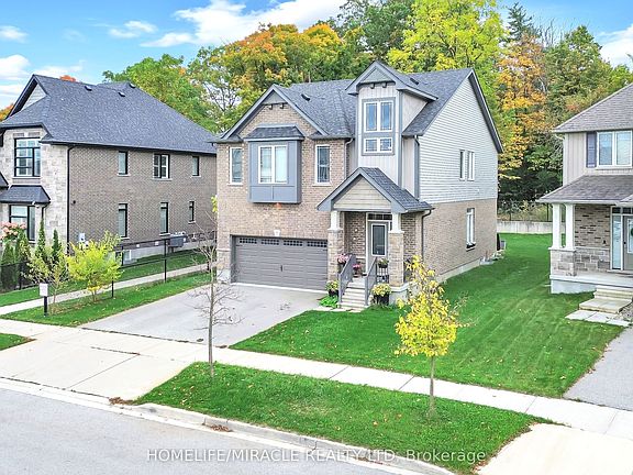 Welcome to Home Premium Ravine Lot!Welcome to this stunning home offering approximately 2,385 sq ft of elegant living space plus a builder-finished basement with a full bath. Built in 2017 and meticulously maintained, this home sits on a wide premium lot backing onto a beautiful greenbelt, ensuring privacy and serene views. The owners invested nearly $100K in lot and upgrades, making this a truly exceptional property.Premium Ravine Lot no rear neighbours, green belt behind 9 ft ceilings with an open-to-above foyer for a grand entrance with 27-ft. cathedral ceiling Bright, open-concept layout with living, dining & spacious family room Elegant oak staircase with metal pickets Spacious primary suite with ensuite bath 2 additional large bedrooms Finished basement by builder featuring a 4-pc bathroom and extra living space Double car garage with ample parking Located on a quiet, kid-friendly street Minutes to Hwy 401 perfect for commuters Close to Conestoga College, schools, shopping, and all amenities Family-oriented neighbourhood surrounded by nature trails & parks Finished top to bottom and move-in ready, this home combines comfort, functionality, and premium upgrades perfect for families looking for both style and convenience! Don't Miss it before it sold