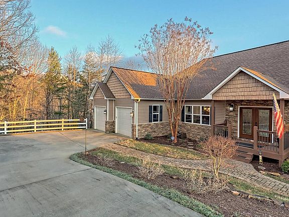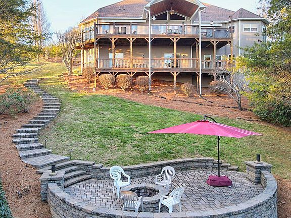 Impeccably maintained custom home was designed to take in the breathtaking views of Lake Chatuge and the majestic Blue Ridge Mountains. Main level entry; Offers open floor plan, great room has vaulted wood ceilings, hand scraped solid hardwood floors, stacked stone fireplace with gas logs, formal and informal dining rooms, office space, large chefs kitchen with stainless steel appliances & granite. Laundry room, half bath, and 2 car garage. Primary bedroom and bath with his and hers vanities, separate walk-in closets, walk-in shower, and jetted tub. All rooms have access to open and covered decking with motorized awnings. Terrace level offers 2 bedrooms with Jack & Jill bathroom. Large family room with 2nd stone fireplace, bar/mini kitchen, billiard room, bonus room, half bath, plus 3 additional storage rooms. Full covered deck leads to pavered steps to large stone fire pit to enjoy the starry skies