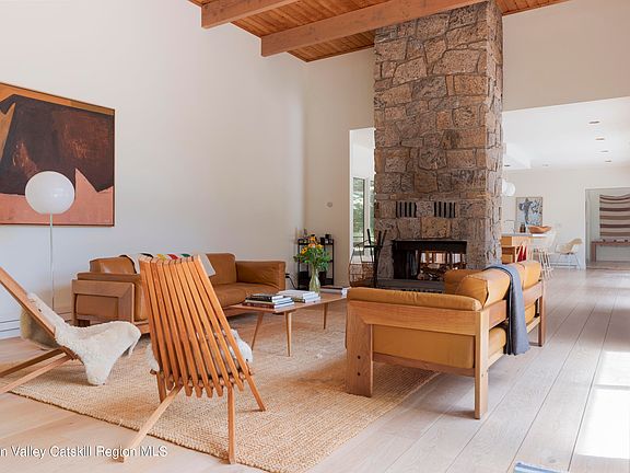 Set on almost 10 private, wooded acres in the Catskill Mountains, this home is the epitome of late Modernist design with sleek horizontal lines, sun-drenched minimalist interiors, and a carefully considered relationship with its natural surroundings.