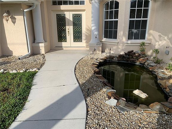 One or more photo(s) has been virtually staged. NO CDD FEES..!! Pool and lanai face Southwest for great afternoon sun..!! This large home has 2165 square feet under air..total square feet is 3068..!! When you walk through the double beveled glass front doors, you will say WOW.. This home's layout invites warmth and family..!! Includes a Formal Living Room and Dining Room and Separate Family Room.. Interior design has Pillars, Arches, Plant Shelves, Volume Ceiling, Tile and lots of light. Looks out to the Pool and a large covered Lanai area, through Pocket Sliding Doors. The Master Bedroom has Pocket Sliders to the Pool area, as does the Family Room. The Kitchen has Quartz Countertops, as well as Wooden, Glass-Fronted Cabinets. Master Bath has duel sinks, separate tub and large Roman Shower. Utility Room Cabinets and Utility Sink. Has a PEX Hot Water System