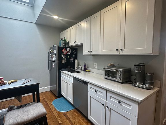 This modern 1-bedroom, 1-bathroom apartment offers comfort and convenience in an unbeatable Quincy location. Featuring beautiful hardwood floors throughout, a spacious bedroom, and a sleek kitchen with a skylight, stainless steel appliances, and gas cooking, this home blends style with functionality. Just steps from the T line, grocery stores, and with quick highway access, commuting and daily errands are a breeze. A perfect choice for anyone seeking a stylish apartment in a prime location!