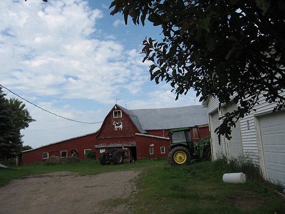 Farm features a 45 cow tie stall barn with 25 heifer stall add on. There is hay mow space above cattle barn and small addition for additional hay storage. Two Patz barn cleaners. The 24' X 48' shop/garage has over head doors for the three bays. There is also a 37' X 80' pole storage shed currently used for hay storage, which could be used for equipment storage. Of the total approximately 86 acres, 80 are tillable. Soil maps are available from listing agent. The farm dwelling is a five bedroom, one bath home.