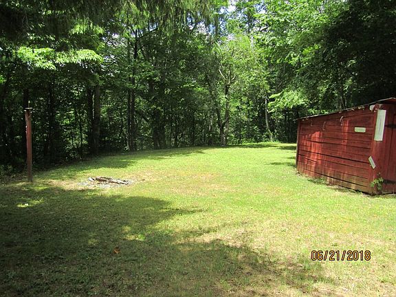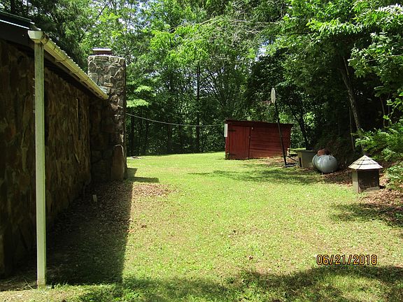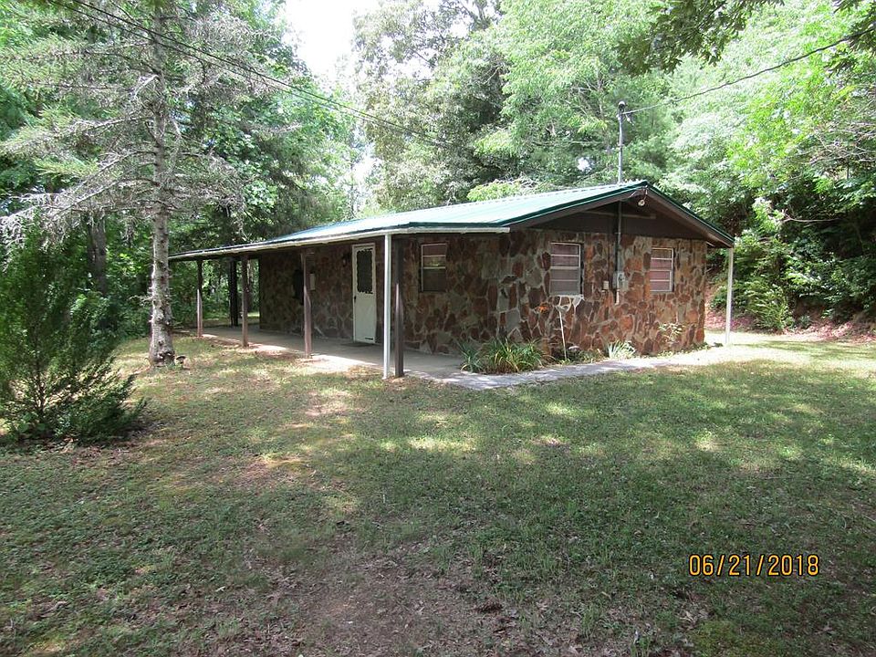 This is the quaint stone cottage you always see in the movies. Covered front porch for sitting and cooling off at dusk. Nice living/kitchen area with beautiful stone fireplace with a gas insert. This little jewel sits on a beautiful level yard with very easy access on a quiet road right outside of town. The lot offers room for adding on if desired. If you are looking for an affordable mountain getaway, this is it.