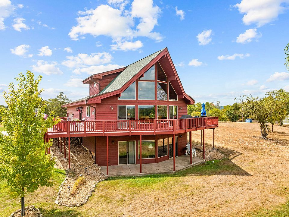 Enjoy the lake life at 79 Freeboard Lane. This well maintained home truly encompasses the feel of a lake home. From the moment you walk into the open concept great room which blends living, dining, and kitchen spaces you feel at home. The two-story cathedral wood-lined ceiling, warm tones, cozy stone fireplace and floor to ceiling windows truly make an inviting atmosphere. The amount of natural lighting will energize your spirit. You can easily live on the main level which consist of the great room, bedroom with private bath, a full guest bath, and laundry room. Upstairs you will find another bedroom with a private bath. Downstairs has an expansive living area with a walk out patio, 2 more bedrooms, a full bath and storage. Outdoor entertaining is a must with the wrap around deck and large yard. Cedar Cove is a beautiful lakefront community that is just a short drive from Kimberling City and all the attractions in Branson. Optional 10x28 boat slip with lift and locker for additional $75K is just a golf cart ride away or a short walk!