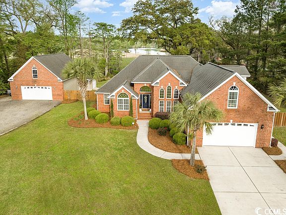 Timeless beauty. This home caught your attention because it is most definitely not like the others! Thoughtful design of this 4 bedroom, 3 bath all brick main house is apparent the moment you approach the front door and can see the reflection of the water through the beveled glass. Step inside and take it all in - the views from the many windows and doors leading to the sprawling rear deck, pool and banks of the Black River; the towering height of the ceilings in the Foyer, Great Room, Kitchen and Dining Room. It is all so impressive! The split bedroom layout makes such sense. The primary bedroom offers a sitting area and the ensuite bath has a large stand-up shower in addition to a jetted tub. On the other side of the home, there are two additional bedrooms along with a full bath and separate laundry room you'll actually WANT to show your friends. Before you head upstairs to see the fourth and largest bedroom with its own full bathroom, you have got to see the pantry! This along with a sprawling kitchen with gas cooktop will make you feel you could have your own cooking show! If you prefer to tinker in the garage instead of the kitchen, again, this home takes care of you, too! The detached workshop with long driveway allows plenty of room for parking all your recreational vehicles. Live wild - set up your big tools and don't put them away!! There's STILL room! There's even a full bath out there (hint - don't come in the main house dirty - you've got no excuse!) There's so much more - you must see for yourself. Living in such a picturesque and peaceful setting (with no HOA), you can give yourself permission to daydream, to play and yes, even turn your phone off. All just six miles from the quaint shops and restaurants along the historic Harborwalk of downtown Georgetown. Come see what may be your forever home!