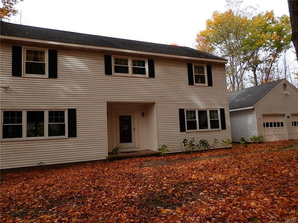Well maintained spacious Colonial in private setting with 3+ acres of land. Offers 4BR 2.5 baths. Newer siding & windows & doors & newer roof. Newer laminate floors. New furnace & some new wiring & plumbing. Lovely fireplace in LR can help with heating. Additional 3 season room with brick floor & vaulted ceiling . House sits a distance from road for privacy. Lots of room to grow