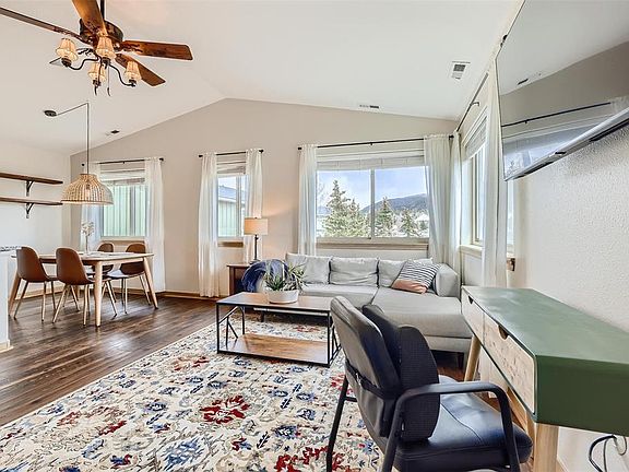 Top Floor light filled end unit plus 1 car garage. 3bd/2bath this unit has vaulted ceilings, new kitchen granite countertops, wood laminate flooring, lots of windows, new washer and dryer, low HOA dues and 2 decks. This beautiful property lives like a home. In the heart of Summit County it is located on the bus route, bike path and 5 min walk to Lake Dillon. Kids park on site. Close to Denver and all of the Ski Areas that Summit County has to offer! 6 months minimum for rentals.