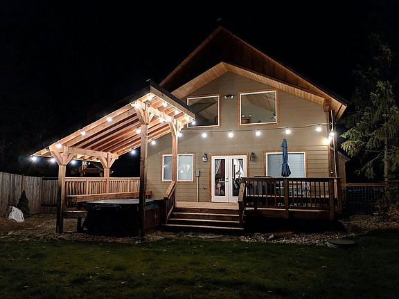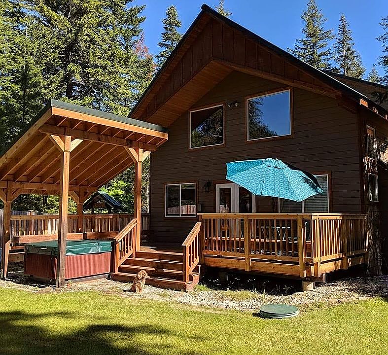 2 bedroom 2 bathroom craftsman at the end of a private culdesac. The fully fenced back yard looks out on dense forest and offers immense privacy. The open floorplan interior focuses on vaulted ceilings and a rustic-inspired gas fireplace with a loft overlooking the main living space with large windows getting more of the view. Both the 2nd floor master and main floor bedroom feature lots of natural light. The home also boasts a private well, hot tub, irrigation/sprinkler system for the fully fenced back yard. There's also a massive 2 bay garage big enough to store ALL your toys (boat + RV + cars + multiple snowmobiles with room for a shop and to finish the half-bath waiting for all your projects to come true.