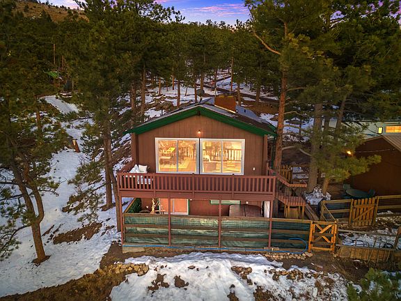 Take a look at this quaint cabin on half an acre overlooking Pinewood Reservoir! This 3 bedroom, 2 bathroom home with 2 car detached garage and storage shed is less than 30 minutes from all the conveniences that Downtown Loveland and the surrounding area has to offer! This well maintained property has so many updates/upgrades that the Sellers have done since purchasing the property in 2015 which include, but is not limited to, the new radon system in 2015, new water heater, new high efficiency furnace, and upgraded gas fireplaces in 2016, new windows in 2017, new Sauna Room in 2018, new exterior paint in 2019, and so much more! Also included in the sale are the new kitchen appliances installed in 2018, the clothes washer/dryer, and the Hot Tub that was upgraded in 2016! Please ask for a list of updates and upgrades provided by the Sellers. Shown By Appointment Only. Schedule your showing today! Please No Drive-Bys out of respect of neighboring property owners.