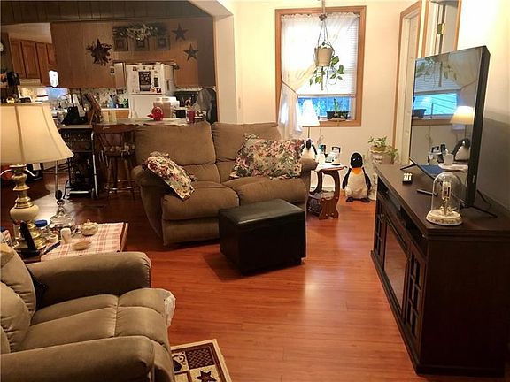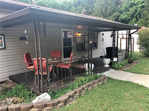 Looking for a quiet getaway on over 3/4 acres? This property is a lovely mobile home with seller's adding a large addition featuring another Full Bedroom, Laundry Room and Full Bathroom. There is an OPEN FLOOR PLAN showcasing the Living Room, Dining Room and Updated Kitchen area. The Kitchen features a counter bar and stools for seating and plenty of cabinets for storage. Newer Laminate Floors too. The basement has two large storage areas which is great for a workshop with access to the rear back yard. Enjoy relaxing on the Covered Front Porch or the Partially Covered Rear Deck (28'x9') overlooking the private, tree-lined yard with mature trees and views of occasional wildlife. The long, paved driveway to the Two-Car Detached Garage offers plenty of additional off-street parking for family or guests. Shed is included too. As an added bonus there is a Handicap accessible ramp on the side of the home. Would be a great starter or second home for weekend camp-style getaways.