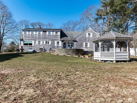 A lakefront retreat in your own backyard! Enjoy stunning park-like grounds, mature trees, plantings, stone walls, screened-in gazebo and 2 gorgeous stone patios all with direct views of Lake Noquochoke from your own backyard providing the perfect entertaining venue (Direct public access to Lake 3 houses over) . This stunning 3 bedroom, 1.5 bath home has much to offer with many recent improvements: refinished red oak floors throughout, all interior professionally painted, open floor plan from formal dining room to attractive updated kitchen with all new appliances, large front-to-back living room with functioning fireplace, a home office space, and half bath complete the first level. Second level has primary bedroom and 2 other bedrooms plus a fully remodeled bathroom. Huge bonus room above the garage offers endless possibilities, along with recent 4 bedroom septic. This home has so much to offer at this price. Come check it out!!