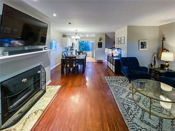 Springdale location with all conveniences, schools, shopping, trains, restaurants, easy access to both Merrit Parkway & I95. Set back from the road, this five-unit complex offers child-friendly safety. Large parking lot, 2 cars possible, and this tri-level living has good space. The kitchen has a newer refrigerator, granite counters with ample cabinetry. Living room with wood-burning fireplace, with slider leading to a private deck. The storage attic is in the walk-in closet in 1st bedroom upstairs. Double closets in the master bedroom. The large finished grade level walk-out family room has storage space, a newer 40-gallon water heat, newer w/w carpet, slider & patio too. Pet friendly too.