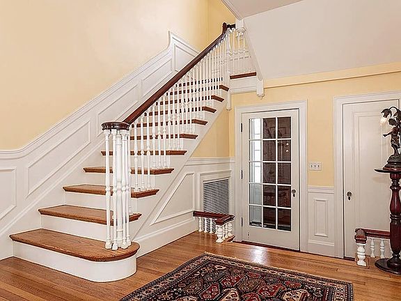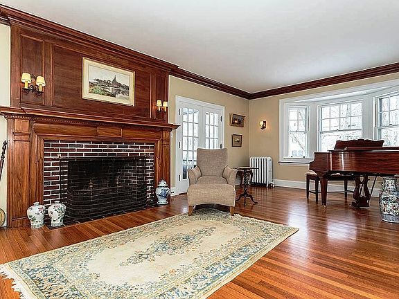An elegant 1920's Colonial Revival residence with elements of Arts & Crafts rarely found so well designed and built in highly desired neighborhood. Noted Boston architect Harry Morton Ramsay's design is an early bow to the open floor plan concept - generous use of double doors and large window configurations, high ceilings, beautiful molding and sconces - all producing feeling of light-filled graciously proportioned spaces. 1st Floor: Large foyer opens to spacious living room with fireplace, sculptured mahogany mantel and French doors leading to a screened porch. Elegant dining room with finely-crafted corner cabinets. Library with window seat and built-in bookshelves. And, large well appointed eat-in kitchen with French doors surrounded by transom and side lites open to brick patio. 2nd Floor: Large master bedroom with dressing room and en suite bath; three other bedrooms and family bathroom. 3rd Floor: Fifth bedroom with window seats and walk-in closet. Lower Level: Large play room.