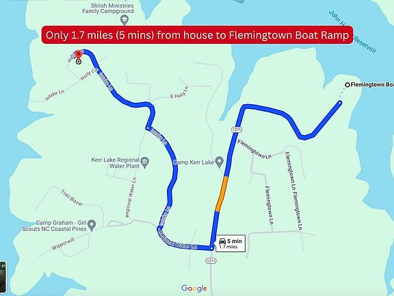 BRING YOUR BOAT! Almost 2 Acres with an Updated 3-Bedroom, 2-Full Bath Ranch Home with BASEMENT & WORKSHOP + BARN + Storage w/ Carport located 5 mins from Flemingtown Boat Ramp. Not directly on Kerr Lake, but OH, SO CLOSE, granting easy access to all its amenities. Boasting glimpses of serene water views from select vantage points on the property, this residence is complemented by an array of functional features. A substantial barn with 664 square feet of enclosed space beckons as an ideal workshop or equipment storage area. Additionally, two convenient covered parking spaces (one is 34.9 x 13.5) attached to the barn adds space to park your boat. You'll appreciate the detached storage unit, complete with two lean-to shelters, perfect for accommodating various storage needs, as well as having a picnic under the shelter. Entertaining is a joy on the expansive 21.8 x 33.8 back deck, seamlessly designed for gatherings and complemented by a convenient ramp. Ample parking space and a circular driveway ensure hassle-free arrivals and departures. The exterior boasts recent enhancements, including fresh paint, new gutters, shutters, mulch, decking boards, and a newly laid concrete sidewalk, enhancing the property's curb appeal. Meanwhile, the freshly epoxied 33.5 x 9.11 BASEMENT presents a versatile space, ideal for a workshop or workout area. The home has a Generator, providing peace of mind in case of an outage. Step inside to discover an inviting open floor plan, featuring a spacious living room adorned by a cozy fireplace boasting a wood-burning insert. The generously sized kitchen boasts a large granite island, providing ample space for culinary pursuits. Freshly painted walls and trim complement the recently refinished hardwood floors, exuding warmth and quality throughout. The kitchen and baths have been tastefully upgraded with new sink faucets and granite counters. The Kitchen has new ceramic tile! New stainless steel appliances, light fixtures, and wall switches & plates add a touch of modernity to this inviting abode. The Bedrooms have fresh, new carpet! LOW TAXES! NO HOA! Come experience the allure of this charming Lake Home, where modern updates blend seamlessly with an inviting rural Lake setting, offering a lake lifestyle of comfort, functionality, and proximity to aquatic adventures.
