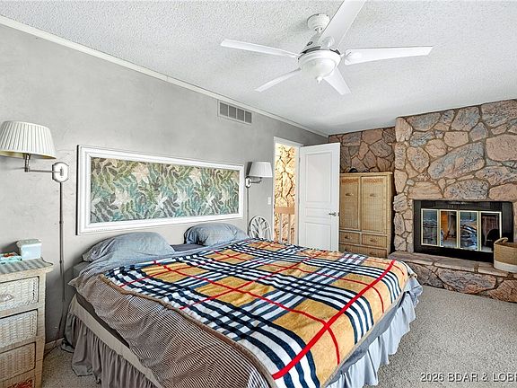 Lake life doesn’t get easier—or cozier—than this. This two-story condo offers the comfort of a home with the simplicity of condo living, perfectly suited for year-round enjoyment. With 0 steps from the parking lot to the front door and just 8 steps to the lake, convenience is built right in. The main level features 3 bedrooms and a full bath, including a private primary suite with its own wood-burning fireplace—an ideal retreat on crisp fall evenings. The lower level is designed for gathering, with an open kitchen, welcoming living space highlighted by a second wood-burning fireplace, a utility/storage room, and an additional full bath with walk-in shower. Thoughtful updates include waterproof vinyl plank flooring, refreshed bathrooms, and a low-maintenance composite deck. Offered fully furnished and move-in ready, this condo also includes access to a four-slip dock with a 12x30 boat slip and a shared rooftop patio showcasing panoramic lake views. With only four condos in the complex, low assessment fees, and ample parking for vehicles and boat trailers, this is a rare opportunity for stress-free lakefront living—whether you’re enjoying warm summer days or cozy Ozark fall nights.