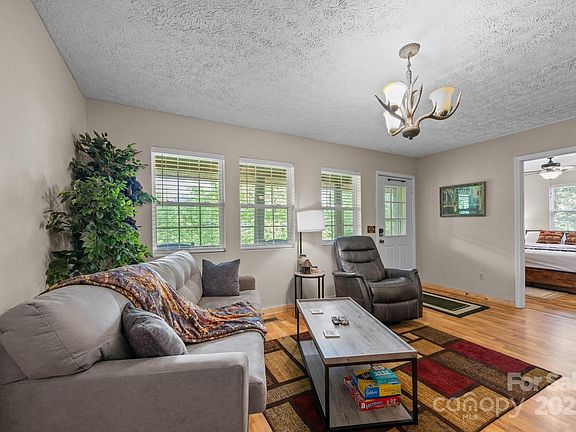 COMES FULLY FURNISHED, this charming 2-bedroom, 2-bathroom mountain retreat in the picturesque hills of Waynesville, NC. This inviting home is perfect for those seeking a peaceful escape with stunning mountain views and the comforts of home. As you step inside, you'll be greeted by an open-plan design that seamlessly combines the great room, kitchen, and dining area, all adorned with rustic décor and a striking antler chandelier. The primary bedroom offers comfort and privacy, complete with an updated ensuite bathroom. The second bedroom is generously sized and there's a full stand-up shower bathroom with laundry facilities. Experience true "Front Porch Living" as you unwind on the covered porch and take in the breathtaking mountain vistas. The heat pump ensures cozy warmth in winter and cool air conditioning in summer. Located near Asheville, the Blue Ridge Parkway, Great Smokies, and Maggie Valley, 79 Jeffrey Lane offers easy access to the best of the region. Don't wait!