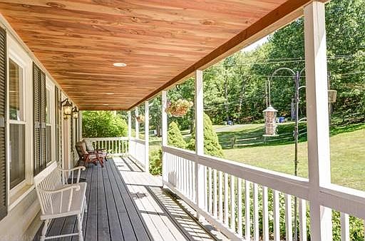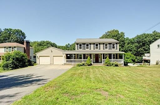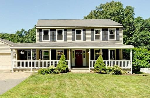 This lovely 3 bedroom, 2.5 bath spacious Colonial-style home on a dead-end street is close to major routes but peacefully secluded. The welcoming farmers porch spans the full length of the front of this well-maintained home. Hardwood floors are throughout the first floor. Stainless steel appliances (including a new stainless steel dishwasher since photos were taken) grace the open floor plan kitchen. The home has a first floor laundry hook-up, a cozy pellet stove in the front-to-back living room, and a over-sized mudroom from the garage into the kitchen. A huge multi-level composite deck brings you to the swimming pool and Jacuzzi area which faces wooded privacy. The walk-out finished basement includes a game room with a pool table. Come and truly enjoy home life!