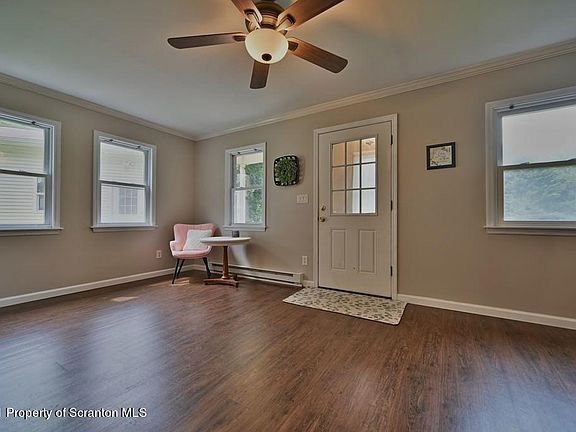 Nestled on more than 1.8 acres of land, this 4 bedroom, 2 bath home is only 5 minutes from Clarks Summit - but you'd never know that when you're sitting on your back deck gazing into the woods behind the house. The interior has been completely renovated, with quartz countertops, engineered hardwood floor, updated master bedroom with 2 large closets, and a 4th bedroom on the first floor that could serve as an office. There is even a full bath on each level. Outside, the home is set back from the road, to give a secluded feel, complete with large mature trees and beautiful landscaping. There is an oversized, detached 2-car garage, a small shed and even a fenced-in area on the corner of the property for a garden or small animals. With as peaceful and quiet as it is, you'd never know that you're less than a mile from the entrance to I-81 Waverly Exit. It is nearly impossible to find a house that is this pristine in a location that is this perfect, so don't blink or you'll miss it. Seller is moving out of the area, so this opportunity will be gone in a few days. Open House on Sunday, August 8 from 12-1:30.