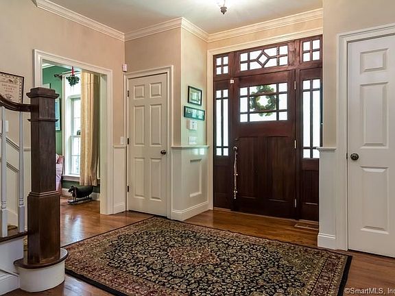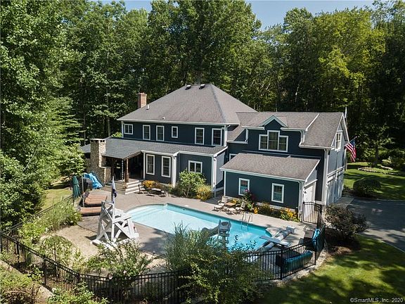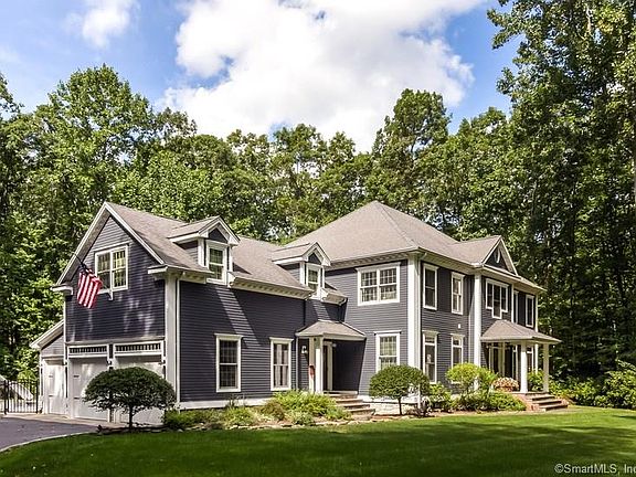 Welcome to this beautifully designed custom built 5 bedroom, 4.5 bath colonial.This home is perfectly nestled in a private and secluded 2 acre lot abutting a 60 acre land trust. Live everyday like you're in your own resort. The yard features professional landscaping and an inground heated roman pool with retractable solar cover. Relax on the covered porch with a built in hottub and stone fireplace/pizza oven-- it is your quiet oasis or the coolest house of all your friends for you to entertain. Step through the custom mahogany front door into the amazing foyer and you will realize that quality design and high-end materials were not spared. Enjoy the flow of the open floor plan, hardwood floors and crown molding accenting each room. The gourmet kitchen features stone counter-tops, subzero refrigerator, double oven and a 6 burner range, sure to delight any chef! The family room, formal living room and formal dining room have ample space for entertaining! The Master bedroom suite has a newly remodeled bath with radiant floor heating and walk in closets. There are 3 additional bedrooms and two full baths on the same floor. The second floor also has a laundry room and large bonus room with its own staircase. The finished basement includes a bedroom, full bath, gym, wet and dry bar, custom built wine cellar, and more. The 10 person private screening room boasts Bose surround, Epson projector, and leather reclining movie theater seating. The three car garage offers radiant heat.