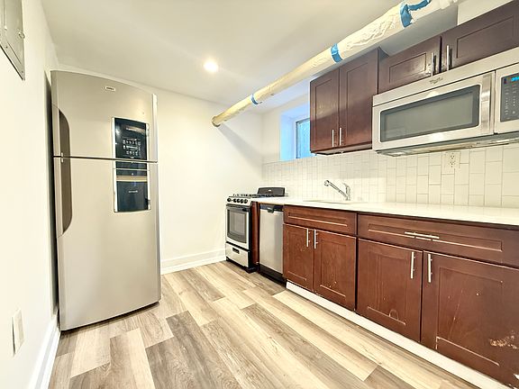 Available NOW! Spacious 2 Bed / 1 Bath Garden Level Unit on the corner of Pacific & Kingston ave, just 3 Blocks to the C Train at Kingston Throop! Apartment: - Large Living Room - Stainless Steel Kitchen with Dishwasher and Microwave! - New Floors - Pet Friendly - Additional Back Exit Location: - 2 Blocks to C train @Kingston Throop and a few short blocks to the LIRR - Laundromat down the block! - Close to Nostrand Ave with lots of restaurants, shopping and cafes!