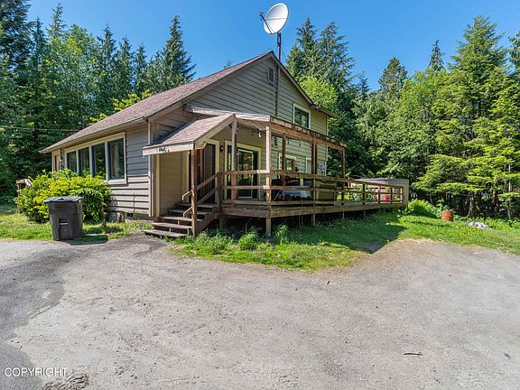 Welcome to 79 Knudson Cove Road, where north end charm meets modern comfort. This delightful 3-bedroom, 1 3/4-bath home boasts an inviting open floor plan with vaulted ceilings in the living room, creating a spacious and airy atmosphere perfect for relaxation and entertaining.Nestled on a generously sized lot, this property features a large yard and a sprawling deck, ideal for enjoying Alaskan summers with family and friends. The lot is flat and usable, offering plenty of space for outdoor activities and gardening. Inside, dual heating ensures year-round comfort, while ample parking accommodates vehicles and guests with ease. A separate mudroom/laundry room entrance provides perfect storage and a perfect place to offload gear before entering the main living areas. Located just moments from Knudson Cove Marina, this home appeals to water enthusiasts and outdoor adventurers alike. Don't miss the opportunity to make this north end retreat your own. Schedule a showing today and envision life at 79 Knudson Cove Road.