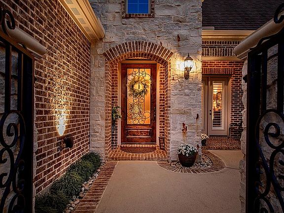 Updated and upgraded Darling 1.5 story patio home on a cul-de-sac street that backs to a lush greenbelt in Creekside! Stunning brick and stone exterior, gated courtyard entry, hardwood and tile floors, Plantation shutters, crown moulding, neutral paint palette, surround sound, and abundant storage throughout. Open concept island kitchen with breakfast bar, granite counters, walk-in pantry, 6 burner gas cooktop and copper farmhouse sink overlooks breakfast nook with wine rack and chiller and den with beam ceiling, gas fireplace and walls of windows; formal dining has doors leading to the charming courtyard; gorgeous study with barrel ceiling; master retreat with sitting area (could be 2nd study) and luxurious bath; two secondary bedrooms down; bedroom with full bath up could be media/game room/exercise room; oversized three car attached garage with epoxy floor; private, fenced yard has extended covered patio, outdoor kitchen and fireplace.