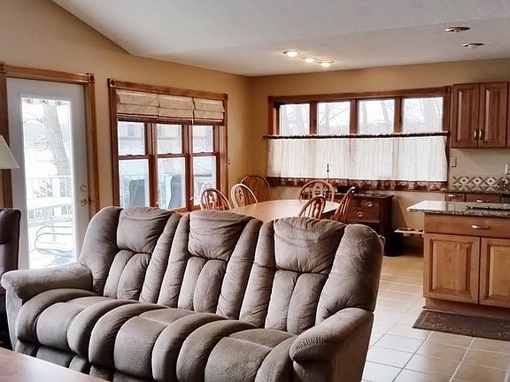 This year round 4BR home on Jimmerson Lk has 70 ft. of lakefront & commanding lake views. The sellers have made several improvements to this home during the past few years. In 2011 they installed all new kitchen cabinets, Hi-End Samsung Appliances, Cambria countertops, new laminate flooring throughout the main level with tile flooring in the baths. A 20x26 family room addition was added as well as a craft room and the master and ½ bath were updated. The home is well insulated and energy efficient with a Solar Assist system capable of 10KW/day & a Trane XR90 furnace & on demand water heater, Anderson windows. The 3 car det. garage has one heated bay for a workshop w/central vacuum & compressor. There is a 2nd efficiency kitchen in the lower level, 2nd laundry plus family rm. All appliances on both levels are included. It is worth your time to see the inside.