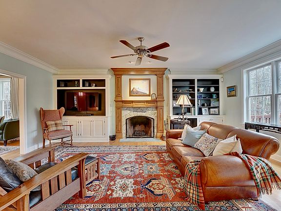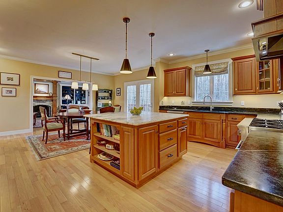 Nestled in the heart of Hampton Falls, 79 Linden is set within a well-established, luxury neighborhood. Privacy intertwines seamlessly with proximity, offering the best of both worlds. The property is sited on 5+ acres, with manicured lawns bordered by breathtaking woodlands. Inside this meticulously maintained home, you'll find exceptional craftsmanship and high-end finishes. A welcoming and spacious layout focuses on style, flow, and functionality. At its core, a stylish kitchen features soapstone countertops complemented by a stunning Danby marble island and six burner Blue Star gas range. The sleek design and warm wood accents create ample space for culinary creativity and conversation. The adjacent wet bar flows into the dining room, where meals are enjoyed, and memories made. A welcoming family room encourages gatherings or a quiet spot to unwind. Upstairs, four uniquely appointed bedrooms comfortably accommodate family and guests. An alluring primary suite with custom walk-in closet, tiled shower, freestanding soaking tub, and double black walnut vanity inspire a spa like retreat. A sprawling mahogany deck and elegant stone patio offer a warm invitation to indulge in the pleasure of al-fresco dining. The landscape unfolds like a painting, where vibrant hues of flora and fauna intermingle with well-established perennial gardens and stunning, rough-hewn stonework. Ideally sited for easy access to major highways, schools, shopping, and the Seacoast's finest restaurants.