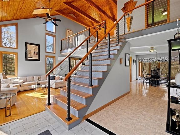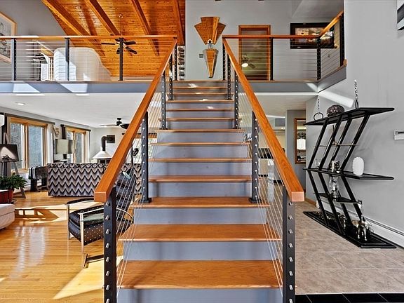 - Features: Wood / Coal / Pellet Stove, Skylight, Ceiling Fan(s), Vaulted Ceiling(s), Flooring - Hardwood, Deck - Exterior, Open Floorplan, Recessed Lighting, Slider