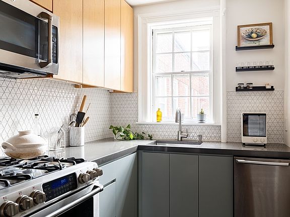 A rare renovated penthouse in an iconic pre-war building. In the heart of Radcliffe village, this sunny top floor unit has a blend of gut renovation & historic preservation. A residence of architects for the last decade - experience thoughtful design with views over Victorian rooftops. The kitchen was fully renovated & the bathroom expanded in 2014. The kitchen feat. custom cabinetry, backsplash & stone countertops, a Fisher & Paykel fridge, double oven range, & d/w. An oversized renovated bath features radiant heated floors, stylish tile work, floating vanity, marble sink and composite bathtub. The sun soaked living room with bay window, working fireplace(!) & original crown moulding with picture rail. A large second bedroom with custom closet storage & corner window exposure lies at the far end of the unit. Laundry in building, professional mgmt, live-in super & additional storage in basement. Ideally hidden between the hubs of Harvard and Porter Sq, HLS, and the shops of Mass Ave.