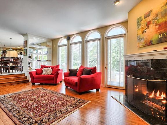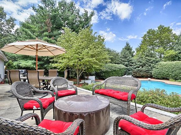 Entertaining here is a dream! Fantastic 5 BR contemporary on 2 acres with pool, patio and hot tub and plenty of level yard for the kids to run. The wide open floor plan boasts a kitchen with granite, top of the line appliances, and large island opening to family room w/gas fireplace all overlooking beautiful patio and pool area. Huge daylight lower lever for all your needs-media room, built in bar and game room, gym and more. Move right in!